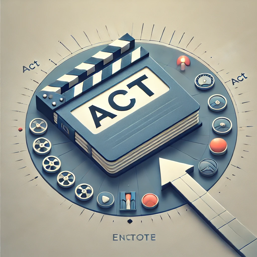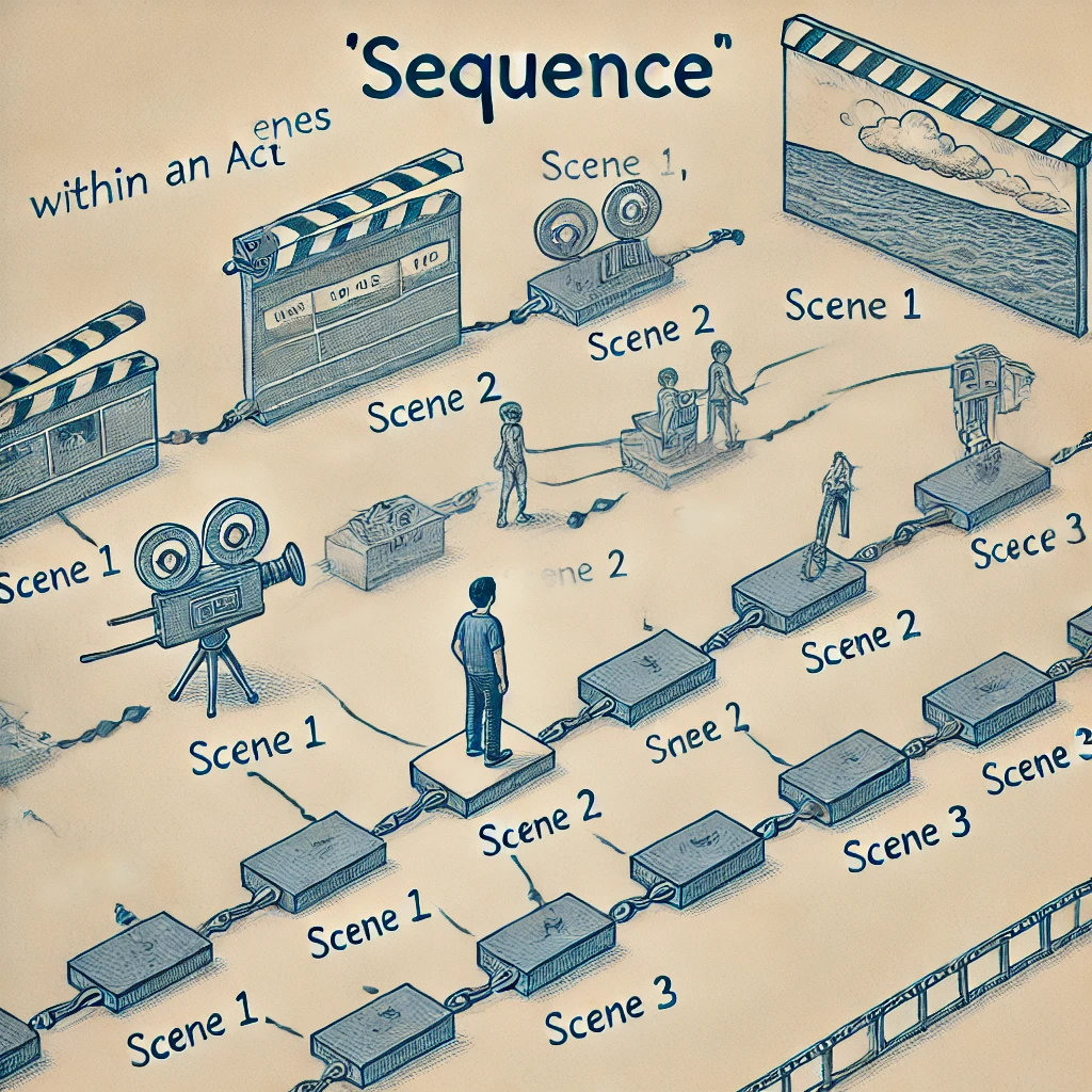영상의 기본 구성 요소를 간단히 나누어 보면 **영화(Movie)**가 있고, 이를 큰 막(Act)으로 나누며, 막은 여러 **시퀀스(Sequence)**로 이루어져요. 그 시퀀스는 다시 **씬(Scene)**으로 나누고, 씬은 **컷(Cut)**으로 연결됩니다. 각 단위마다 영상의 흐름과 감정을 전달하는 역할을 하죠.
