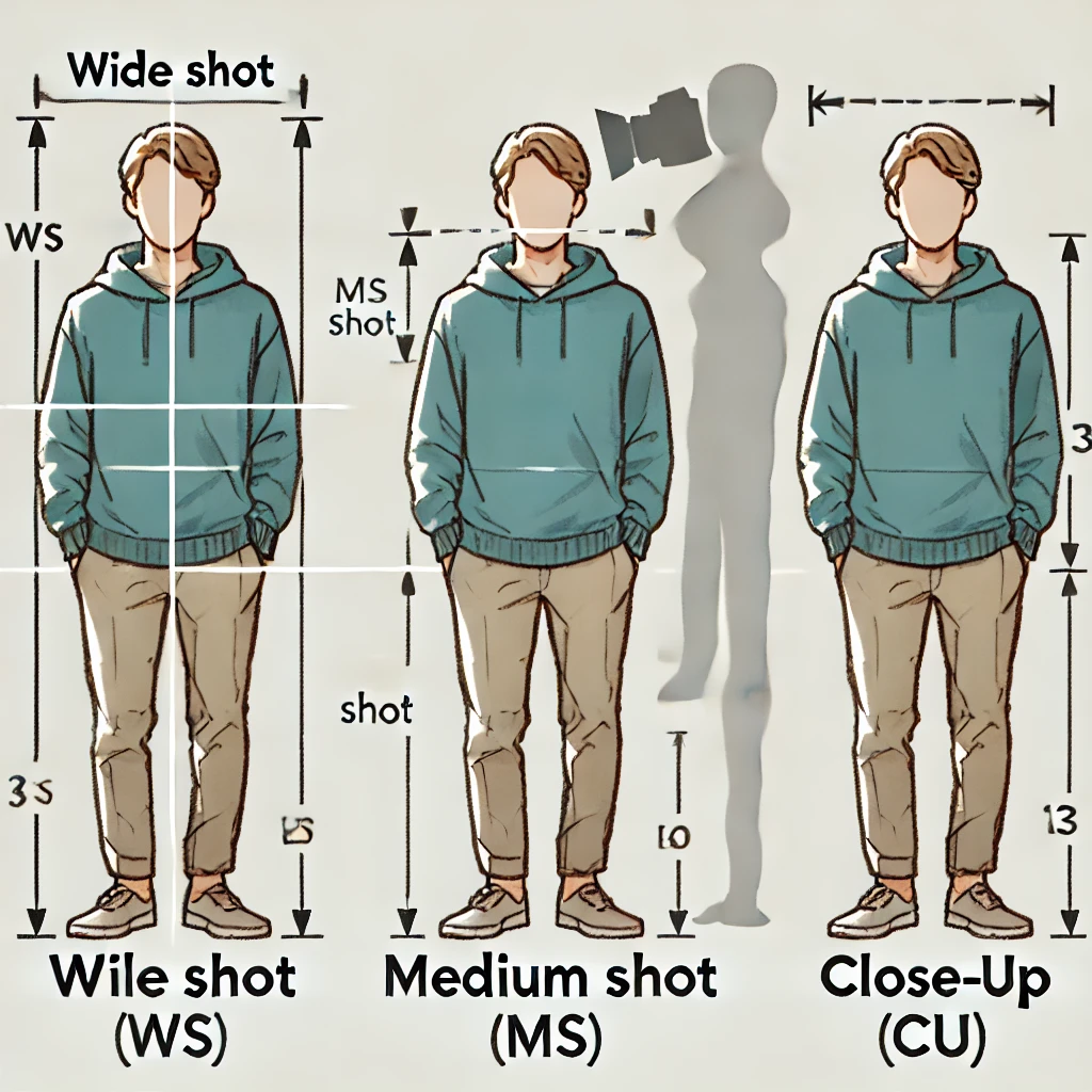 영상에서 카메라 샷의 크기는 인물이나 사물을 얼마나 가깝게 촬영하느냐에 따라 달라져요. 각각의 샷은 인물의 표정, 감정, 상황을 강조하는 데 쓰입니다.
